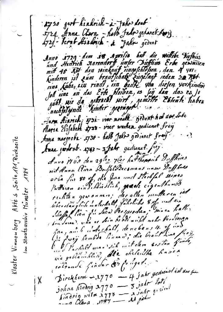 Nach dem der Stammbaum auf dem Hof Dufhues in Telgte- Raestrup schon groß geworden ist, hat mir der Hoferbe Wilhelm Dufhues mitgeteilt, dass es im Kreis Warendorf/ Beckum noch viel mehr Dufhues gibt. Da ich auf der Suche bei den nach der Taufe nicht mehr auffindbaren Dufhues war, habe ich die Kirchbücher in Beckum und Umgebung durchsucht und so begann der Aufbau von mittlerweile 6 Stammbäumen Dufhues mit all seinen Ablegern. Dieses Hobby konnte ich in der Schichtarbeit bis 1992 gut machen. Im Herbst und Winter morgens ins Archiv und nachmittags Arbeiten, sowie morgens Arbeiten und nachmittags bis abends das abgeschriebene eingearbeitet. Da die Schichtarbeit 1992 für mich beruflich in Tagschicht wechselte, habe ich die Akten der Ahnenforschung bis 2013 ruhen lassen.